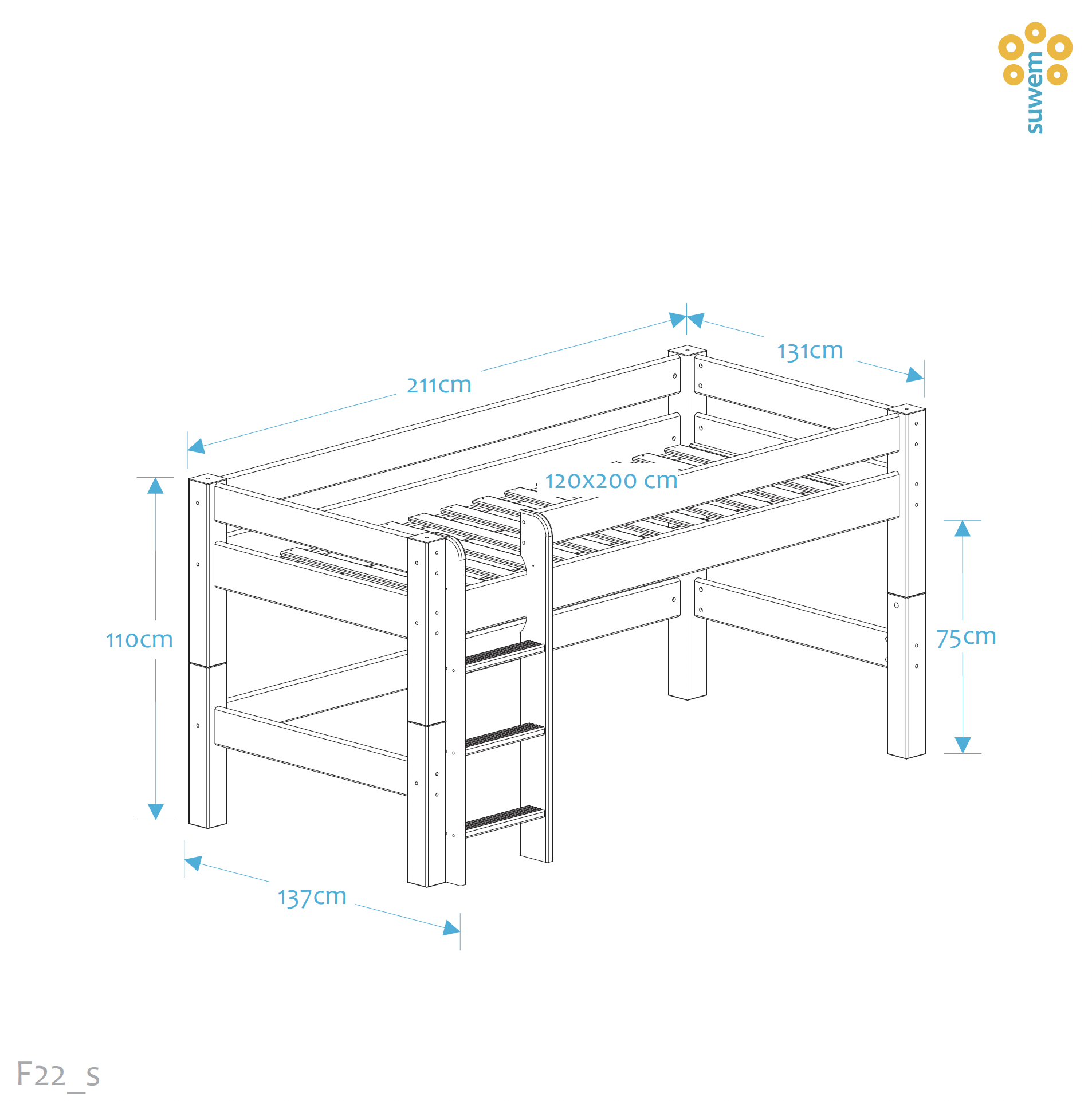 Tugeva konstruktsiooniga ja ruumi säästev massiivsest puidust poolkõrge lastevoodi.