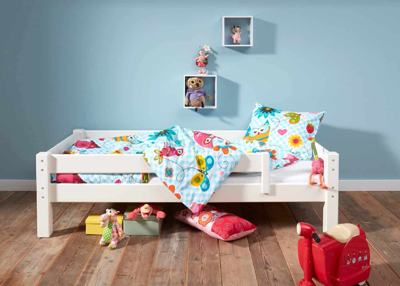 Tugeva raamiga lastevoodi koos esimese ja tagumise turvapiirdega.